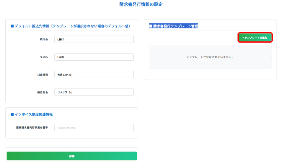 ・ 請求書発行テンプレート管理>+テンプレートを追加