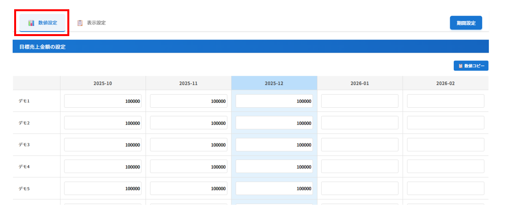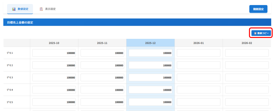 ※指定月の数値をコピーしたい場合は「数値コピー」をクリック