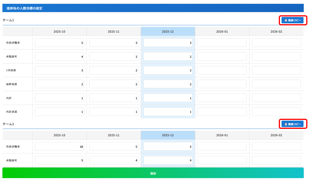 目標人数を入力後、画面下の「保存」ボタンをクリックしてください。