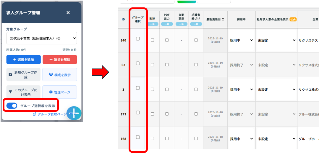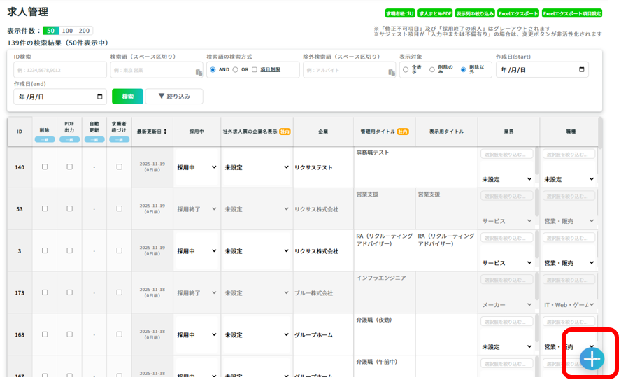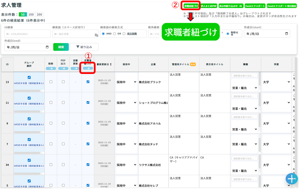 - 【表示列の絞り込み(求職者一覧ページ、企業管理・求人管理ページ)】