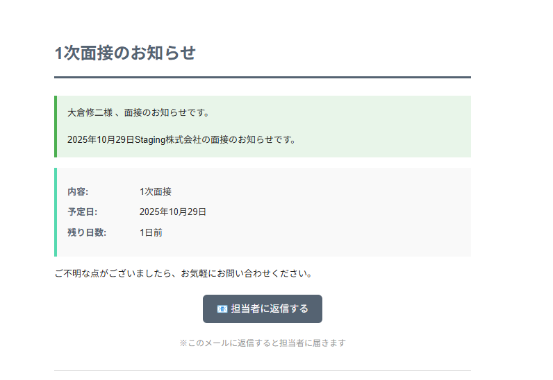 【例】1次面接のお知らせ、面接リマインド 等