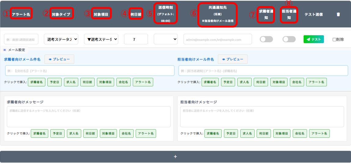 ONにすると求職者の登録メールアドレスに通知されます(デフォルトOFF)